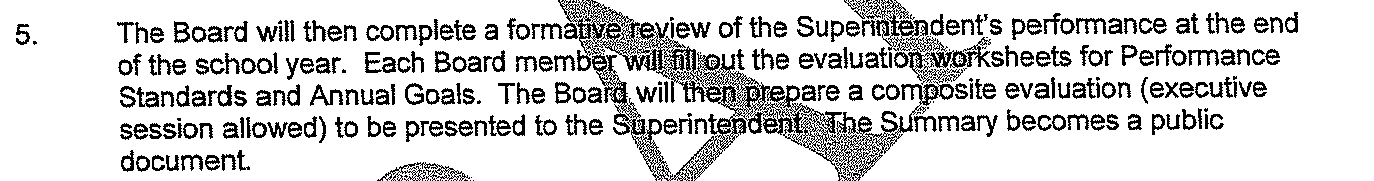 There is a simple line of accountability that is broken when the evaluation is not made public. The voters select the Board. The Board selects the Superintendent, sets policy and evaluates the Superintendent’s performance in implementing those policies. If the Board will not demonstrate to the public how they are holding the Superintendent accountable, then the voters have no basis for judging the performance of the Board in this most crucial area. There is no transparency and no real accountability.