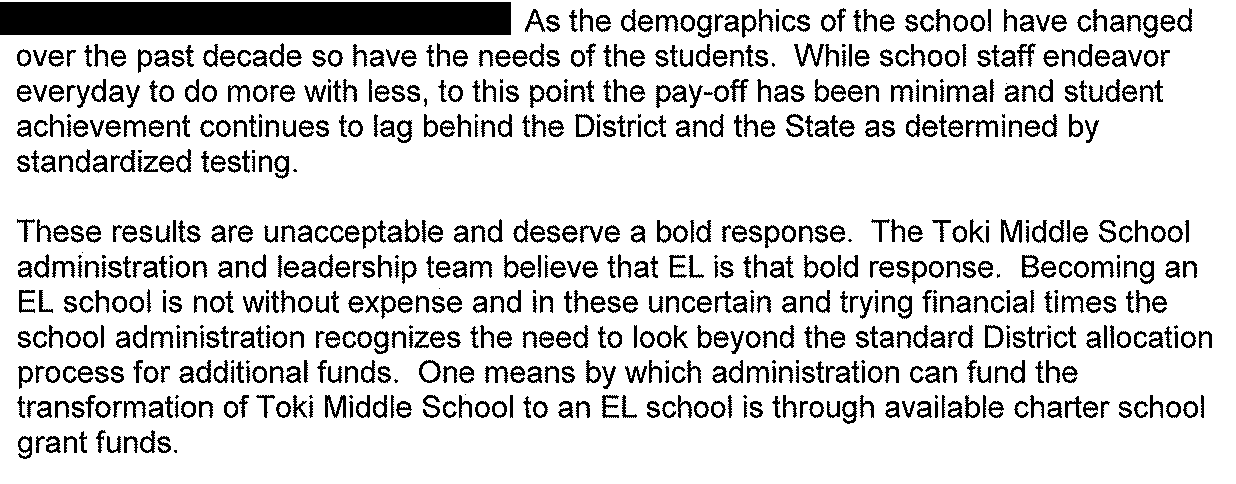 The district will not be expanding the DLI program to all schools put forth in the ELL plan which should lead to a decrease in FTE by .50 for an additional DLI planner. This would provide about $43,755 dollars in additional funds. There are very few students and families (currently 4 families based on feedback from Principal) that have shown interest at Thoreau Elementary in the DLI program at a to-be-determined school, therefore $36,000 dollars appears to be an excessive amount of money set aside for transportation costs for busing. In total, there would be about $70,000 dollars in additional funds.