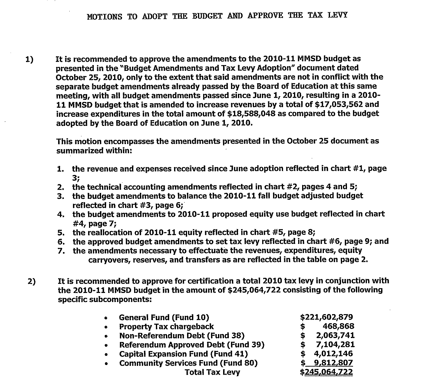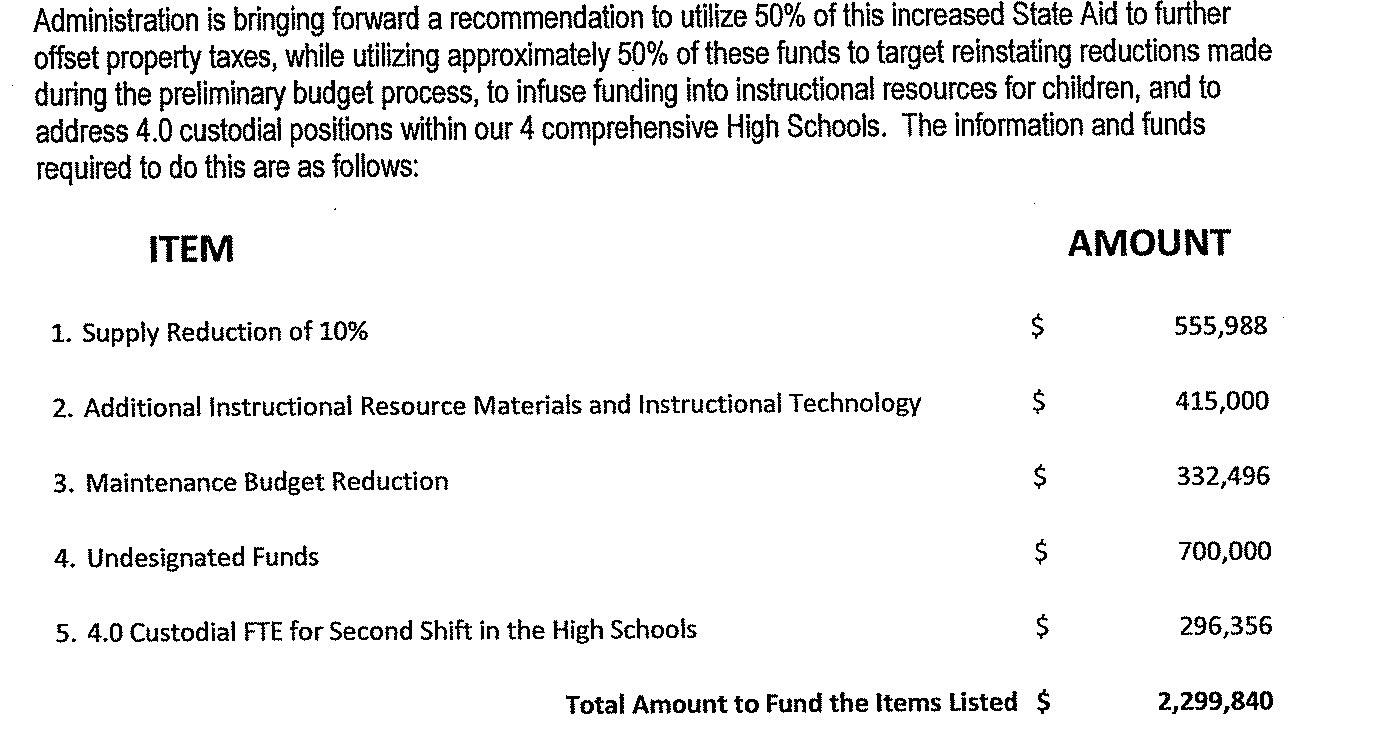 Update #2: From a second Press Release, on Revenue Limits: “The plan restores revenue limit authority to all districts. It calls for an increase in the per pupil revenue limit to $225 per student in the first year of the budget and $230 per student in 2014-15.” More details on Fair Funding and other matters in this Press Release also. A district by district tally may be found here.